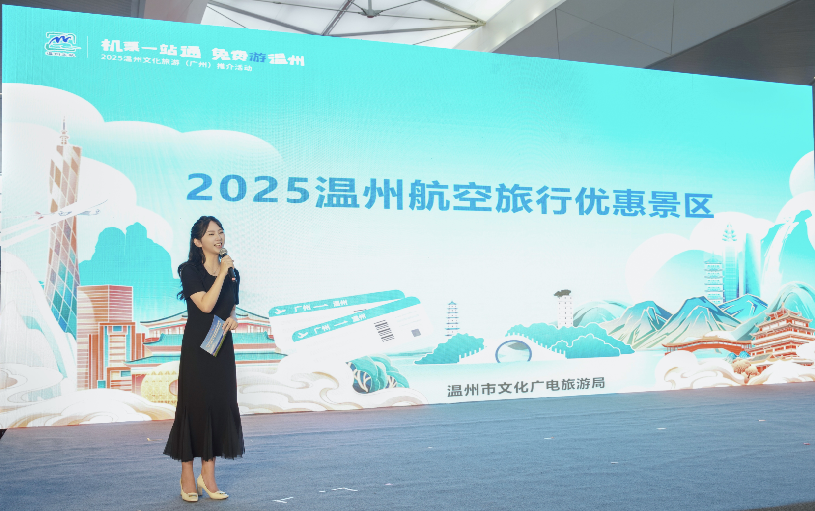 发布会还邀请了温州市文旅局,金牌导游登台推介“机票一站通,免费游温州”活动,发出“落地即旅程”的邀约。