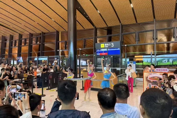 这也是丽水机场7月18日通航后开通的第三条超一线城市“空中快线”,164名首航旅客从深圳宝安国际机场出发,仅用105分钟便跨越千里抵达丽水,体验了这场“山海速通”之旅。在航站楼,丽水机场公司举行了简短但热烈的首航仪式,丽水市副市长蓝伶俐等领导出席。