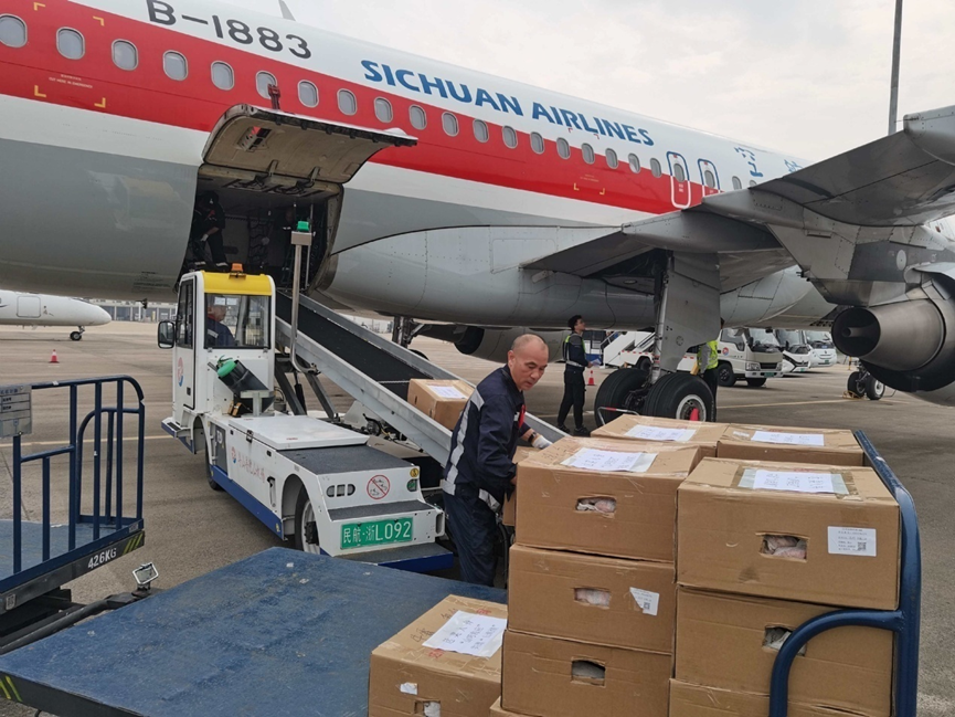自航空物流完成首轮测试以来,舟山与达州之间的航线不仅方便了人员往来,更成为物产高效流动的“生命线”。在达州起飞航班的货舱中,常常满是新鲜蔬菜、瓜果、松茸,以及散养土鸡、优质蜀宣花牛肉等农特产品。它们曾经困于山水阻隔、运输漫长、保鲜困难,难以走出大山;如今,却能在24小时之内“飞”入舟山市民的厨房。